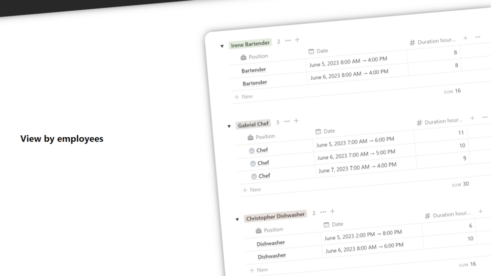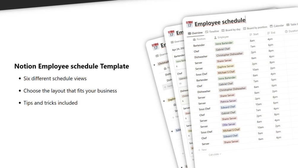 - Enjoy the convenience and clarity of managing your employee schedules with Notion.
