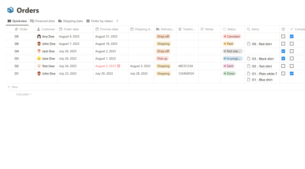 - Overdue view, where you can see orders, that are not sent yet