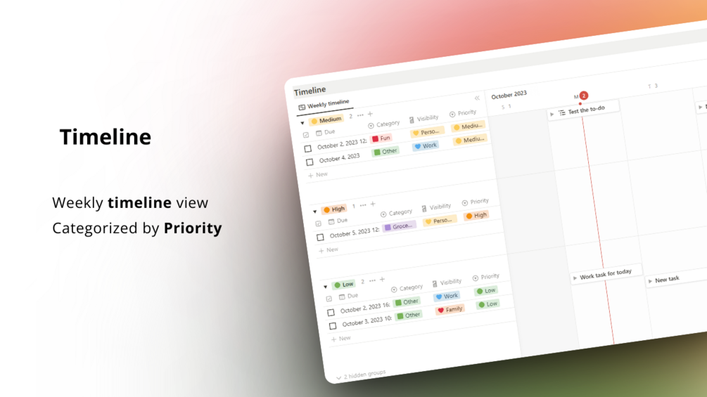 Effortlessly categorize and prioritize tasks based on factors like importance, category, or visibility.