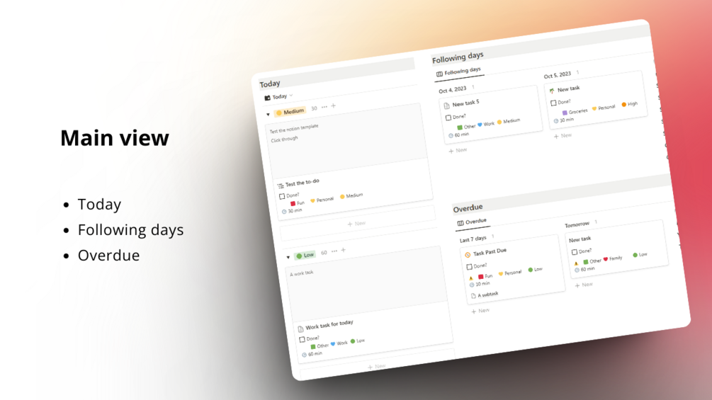 Whether you prefer to concentrate solely on today's to-dos, anticipate upcoming tasks, review what should have already been completed, or gain a broader perspective using timeline or calendar views, you'll find it all right here – at a single glance.