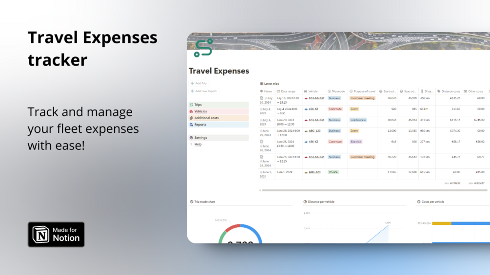 Managing travel expenses for multiple vehicles can be challenging. Our Notion template offers a streamlined solution for businesses, fleet managers, and individuals who need to track and analyze their travel costs effectively.